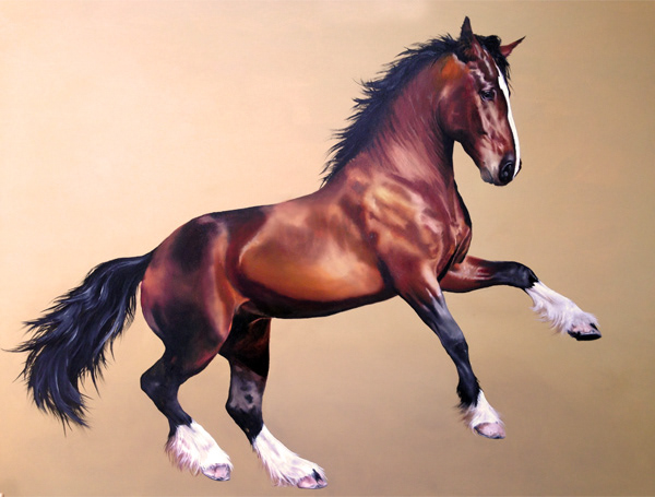 A collection of paintings inspired by George Stubbs Whistlejacket, a contemporary styled painting of a traditional subject