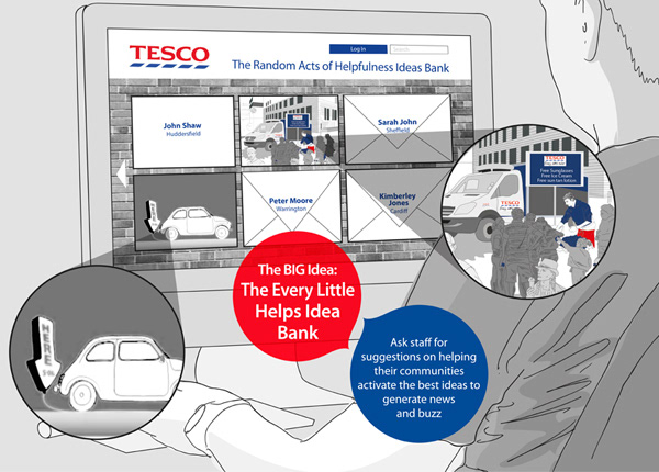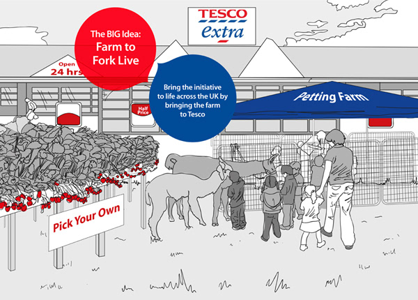 Illustrations for a pitch to Tesco. The boards explained the ideas visually